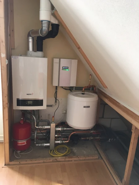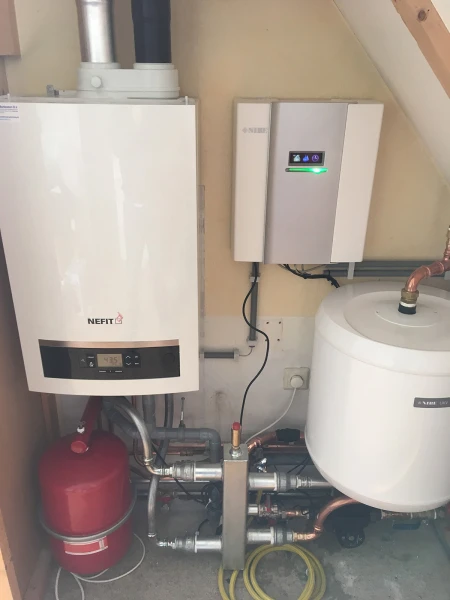 Levering en plaatsing Nibe warmtepomp in kombinatie met een Nefit hr ketel (hybride systeem) en vernieuwen van bestaande radiatoren voor lage temperatuur convectoren met dbe units.