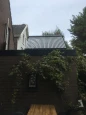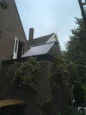 platte dak/balkon van de bijkeuken geplaatst, schuin tegen elkaar zodat er voldoende