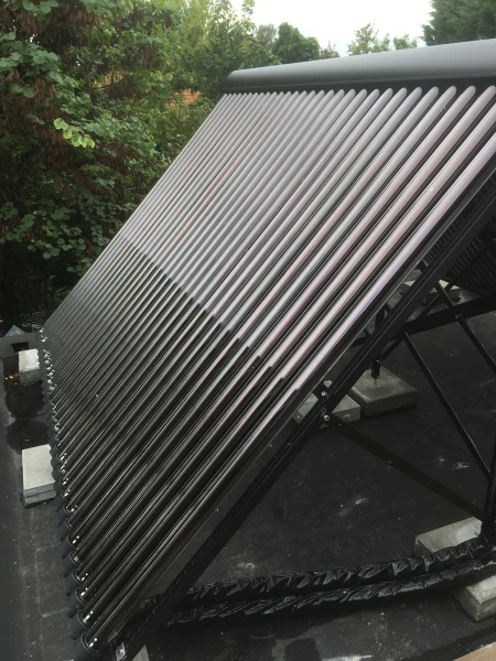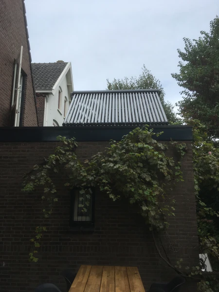 Omdat er op het dak van de woning pv panelen liggen zijn de collectoren op het